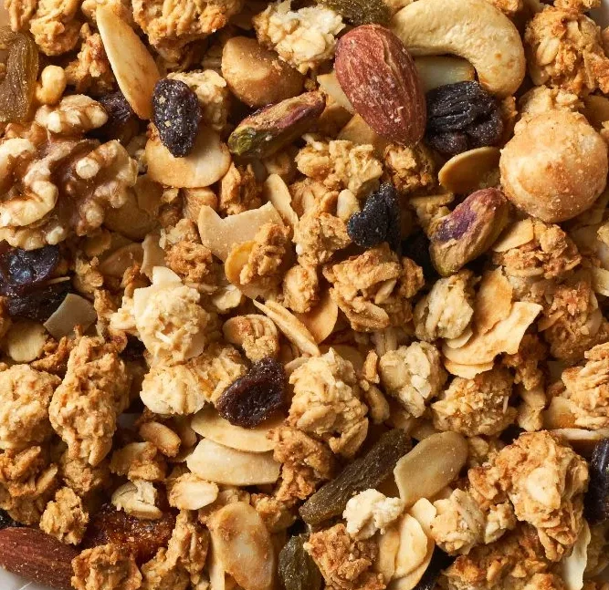 ・原材料名:有機オートミール(アメリカ),ナッツ類(くるみ、アーモンド、カシューナッツ、マカダミアナッツ、ピスタチオ),甘酒,きぬひかり米粉(京都産),ドライフルーツ類(レーズン、マスカットレーズン、インカベリー、デーツ、いちじく),有機ココナッツファイン,有機メープルシロップ,有機ココナッツオイル,塩