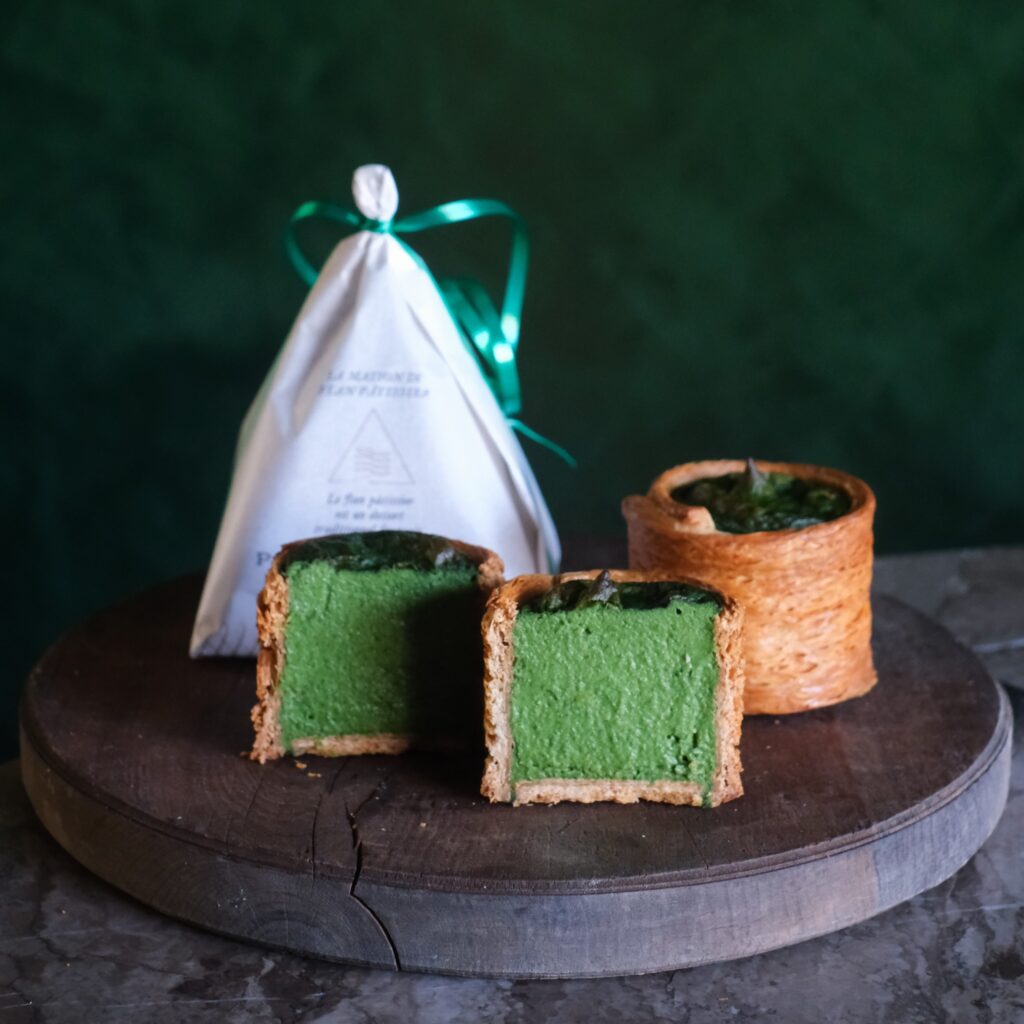 本場フランスでもフランといえばバニラ。多層にこだわったパリサクのパイ生地に、長崎の養鶏場直送の無添加飼料で育った鶏の濃厚な卵やバニラビーンズをふんだんに使用した香り豊かなプルトロのフラン液を流し込んだパケモンテを代表する定番のフラン・パティシエ。卵は他のフランと異なる特別なものを使用しております。