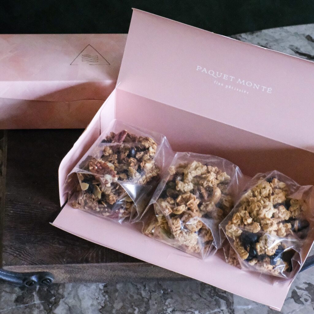 京都丹波産「きぬひかり」から生まれた、砂糖不使用・添加物不使用・グルテンフリーのグラノーラ。Echika表参道の20周年を記念し、普段は取り扱いのない3種の味わいをセットにしてパケモンテのオリジナルボックスにお入れします。(3種類:甘酒玄米粉グラノーラ/珈琲玄米粉グラノーラ/塩麹米粉グラノーラ)