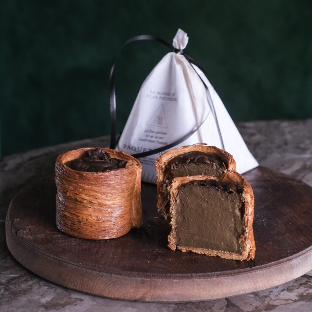 Flan Parisien is a beloved French classic — simple and unpretentious. Made with the same ingredients as our signature Flan Pâtissier, but prepared differently to create a unique pastry texture. Offered in a set of three small pieces: classic vanilla and two seasonal flavors.(9/10~)raspberry・vanilla・organic matcha