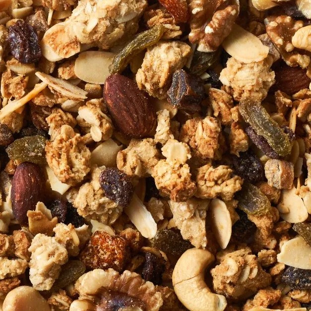 ・原材料名:有機オートミール(アメリカ),ナッツ類(くるみ、アーモンド、カシューナッツ、マカダミアナッツ、ピスタチオ),甘酒,きぬひかり米粉(京都産),ドライフルーツ類(レーズン、マスカットレーズン、インカベリー、デーツ、いちじく),有機ココナッツファイン,有機メープルシロップ,有機ココナッツオイル,塩